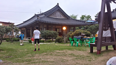 We happened upon Erin's (a friend fellow Fulbright teacher in Korea) students playing soccer outside, ridding themselves of the stress of the midterms. Without skipping a beat, we jumped right in.